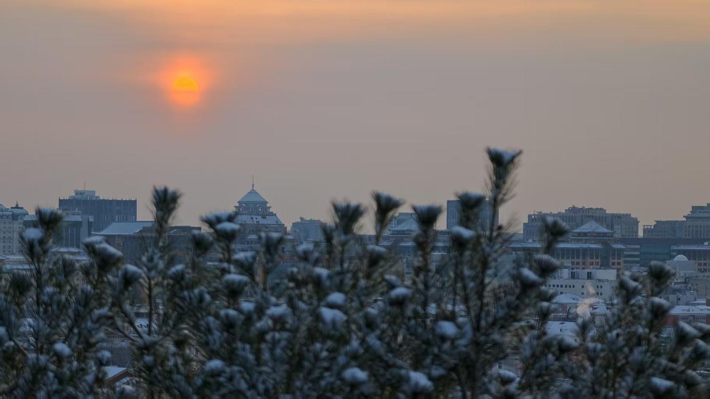 12月13日,北京雪后迎来日出时刻!这么美的雪后晨光,今天财富家,您准备去哪儿赏雪?
